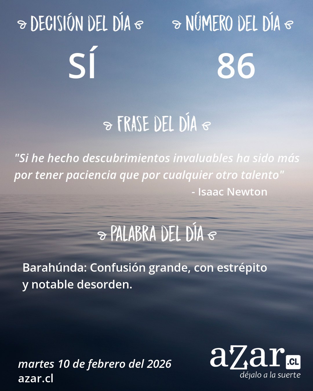 Datos generados al azar exclusivamente para hoy, lunes 09 de febrero del 2026.