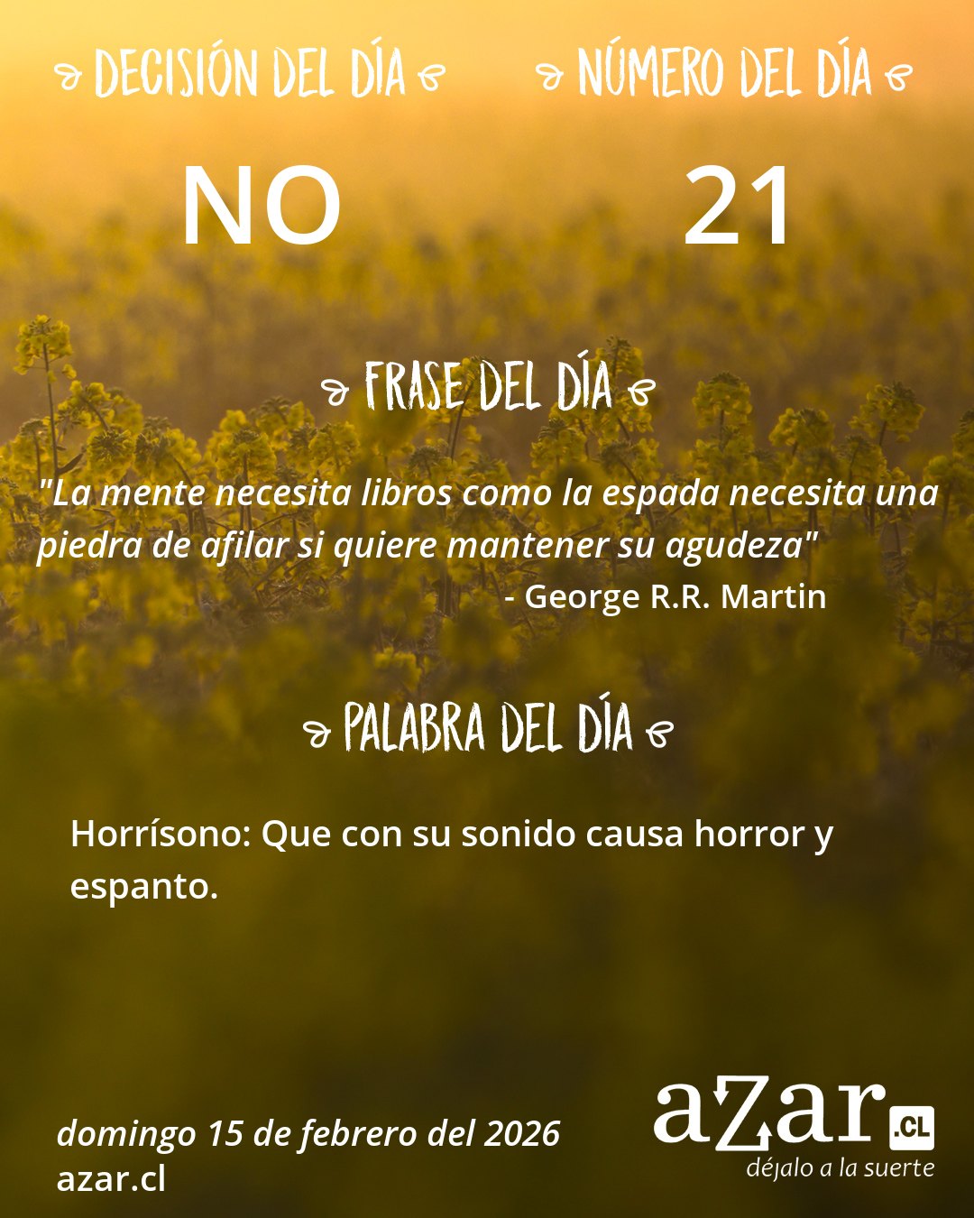Datos generados al azar exclusivamente para hoy, domingo 15 de febrero del 2026.