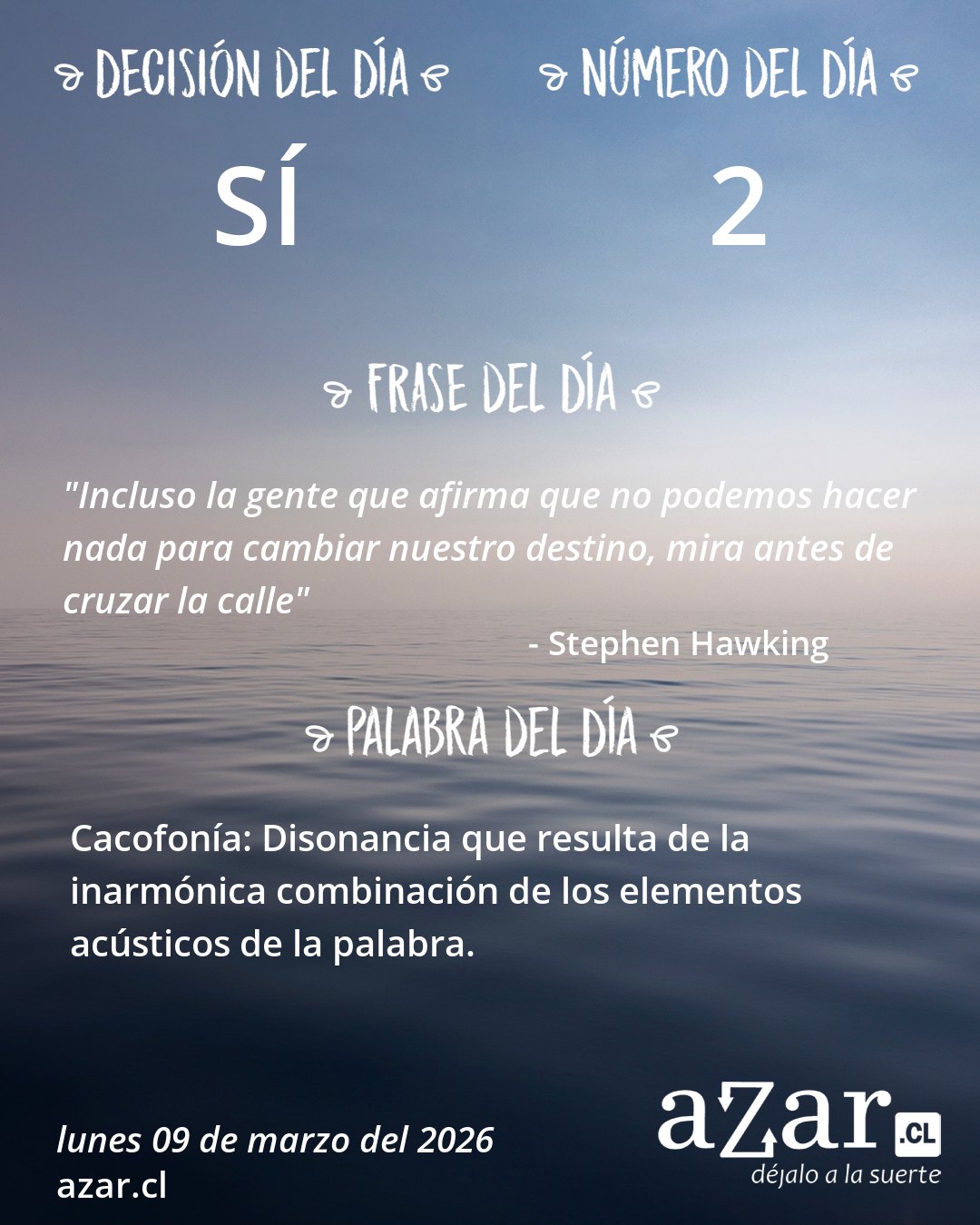 Datos generados al azar exclusivamente para hoy, lunes 09 de marzo del 2026.