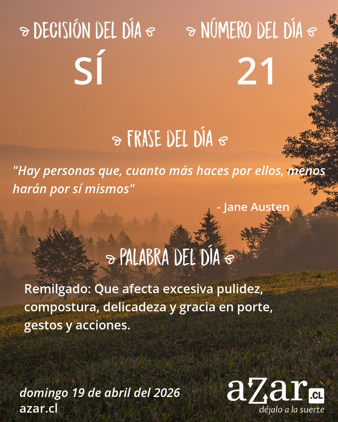 Datos generados al azar exclusivamente para hoy, domingo 19 de abril del 2026.